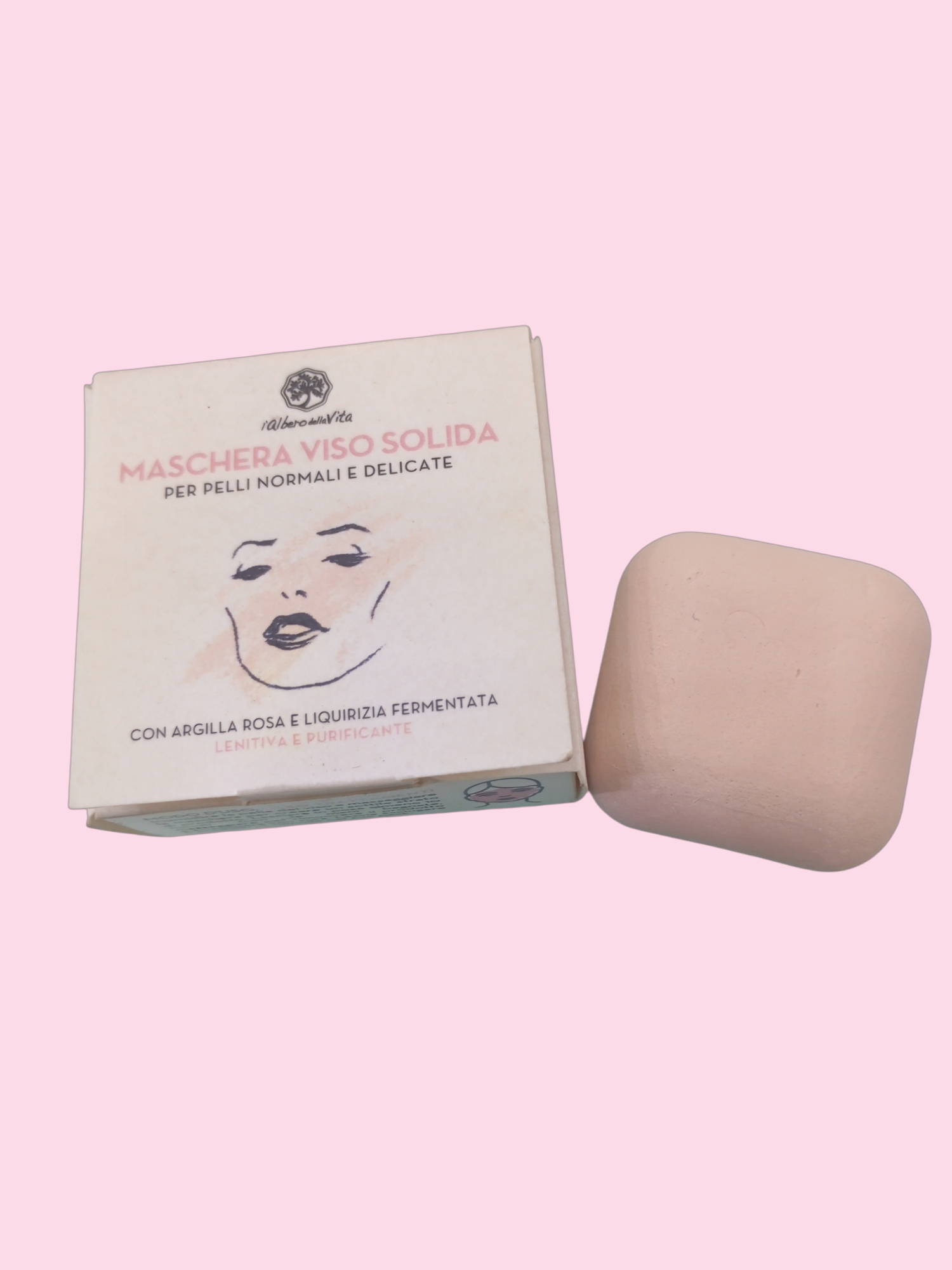 MASCHERA VISO SOLIDA ROSA Con Argilla Rosa e Liquirizia Fermentata. Per Pelli Normali e Delicate. Lenitiva e Purificante.