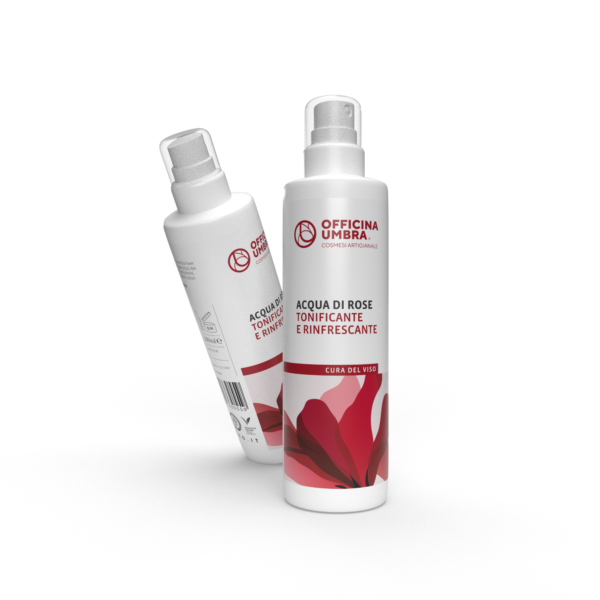 Distillato naturale di petali di Rosa Centifolia arricchito con succo di Aloe Vera bio. Ideale per tonificare e rinfrescare la pelle e rimuovere le impurità superficiali.